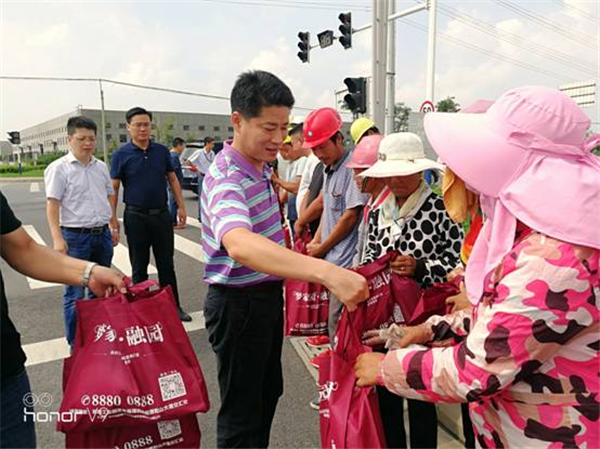 8月16日上午,開發(fā)公司副總裁劉建華帶領(lǐng)市政工程部、房建工程部和行政人事部部門負(fù)責(zé)人來到公司項(xiàng)目工地,現(xiàn)場慰問了奮戰(zhàn)在高溫一線的企業(yè)員工和建筑工人,并親自給他們遞上了毛巾、肥皂、洗發(fā)水、清涼油等防暑降溫物品。