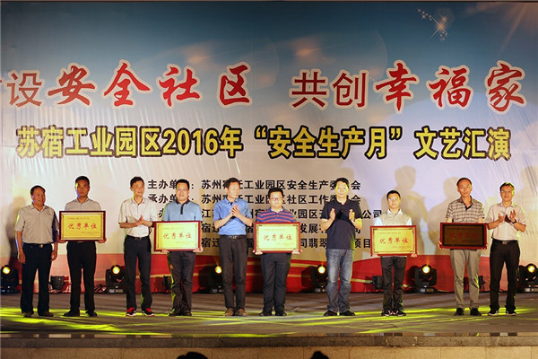 宿遷市安監(jiān)局副局長李巖,工委領(lǐng)導(dǎo)許紹杰、各局辦有關(guān)負(fù)責(zé)人等出席晚會,并為蘇州電瓷廠等榮獲園區(qū)2016年安全生產(chǎn)月活動的優(yōu)秀單位頒獎。